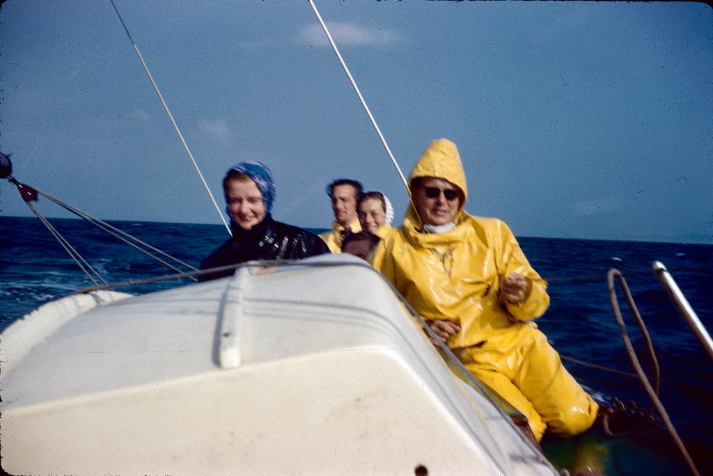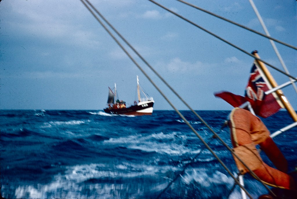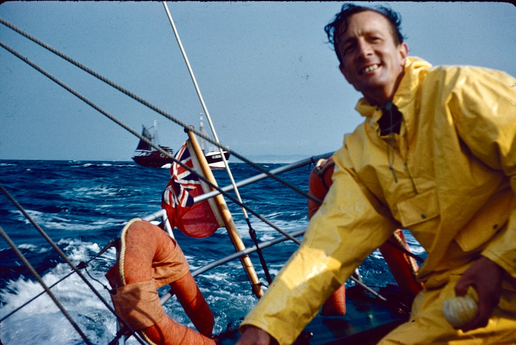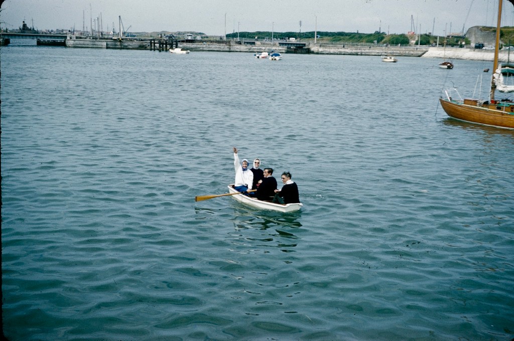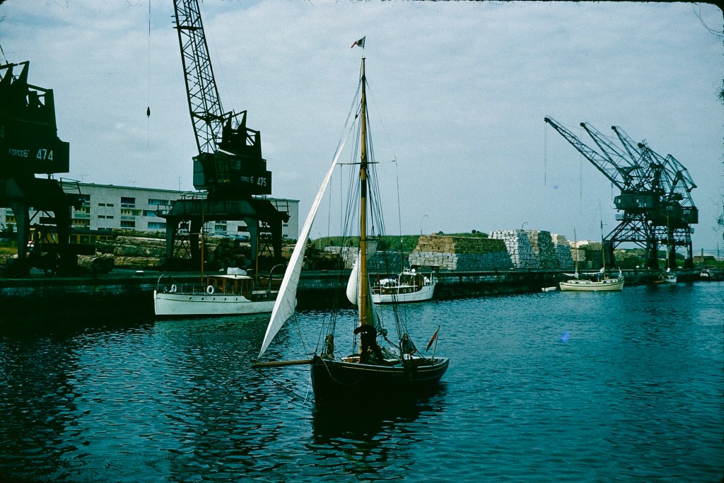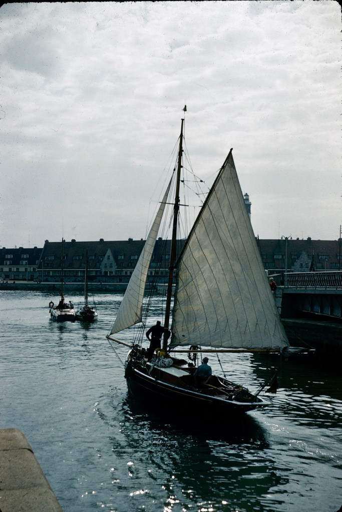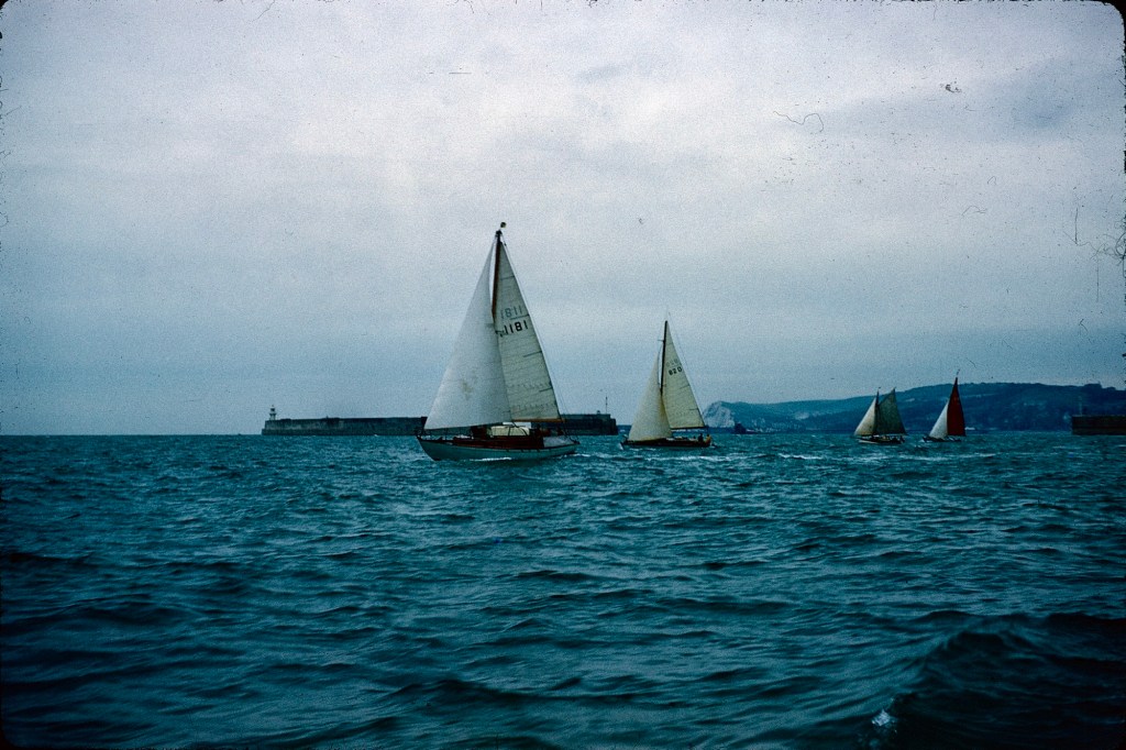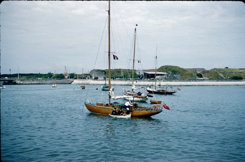 This was quite a thrilling sail, by the looks of it, especially after Calais and down the Channel to Brixham in Devon. Mum was aboard with Dad, and we kids apparently met them in Brixham, and I went out on Ally Sloper myself. I don’t remember it, but the camera doesn’t lie…