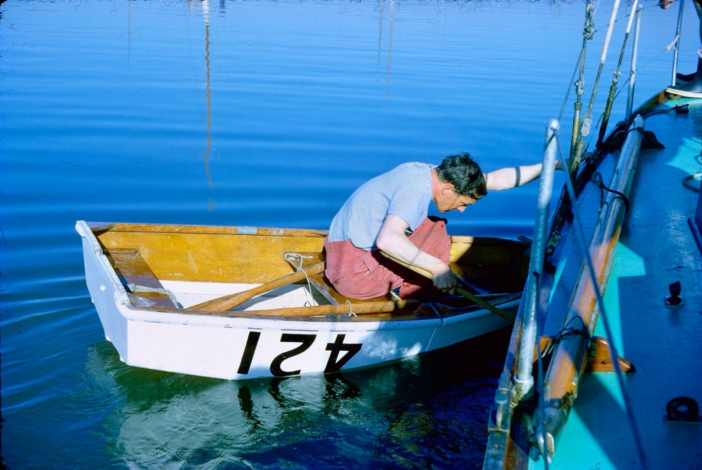 This set starts with a race on Pomme d’Or, owned by a crew mate of Dad’s, boat maintenance at Brightlingsea, then back aboard Ally Sloper for a trip up the River Orwell. I was apparently at Brightlingsea, but I don’t remember it now. Great detail, and sense of ‘60s fun messing about in boats. June 1962 was a busy month!